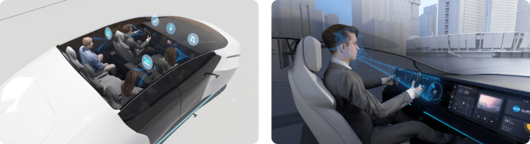 清聽聲學研創(chuàng)的智能座艙Focusound Screen™聲場體驗,巧妙地利用智能座艙中已有的大屏,并利用自研的多音區(qū)Multiple Sound Zone技術,直接通過屏幕給駕駛員創(chuàng)造獨立的專屬聲場,將導航信息、車載電話、提示音等聲音清晰地傳遞給駕駛員而不對其他位置的乘客造成干擾,同時還能精確再現(xiàn)聲音的空間方位。前排及后排乘員也能個性化定義音頻,擁有個人私密音區(qū),解決出行途中通話/會議隱私保護、個性化音頻等需求,幫助用戶更安全、更舒適、更有樂趣地出行。