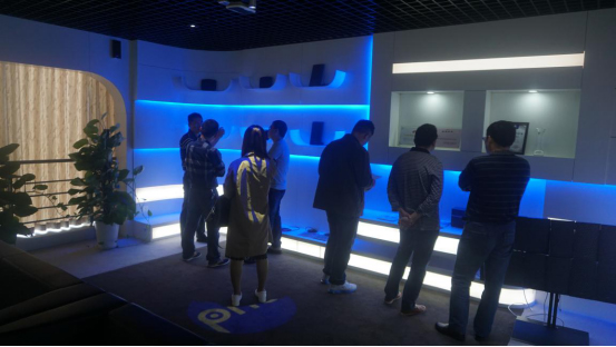 圖一 高新區(qū)組織部領(lǐng)導(dǎo)們參觀清聽聲學(xué)(蘇州)企業(yè)展區(qū)